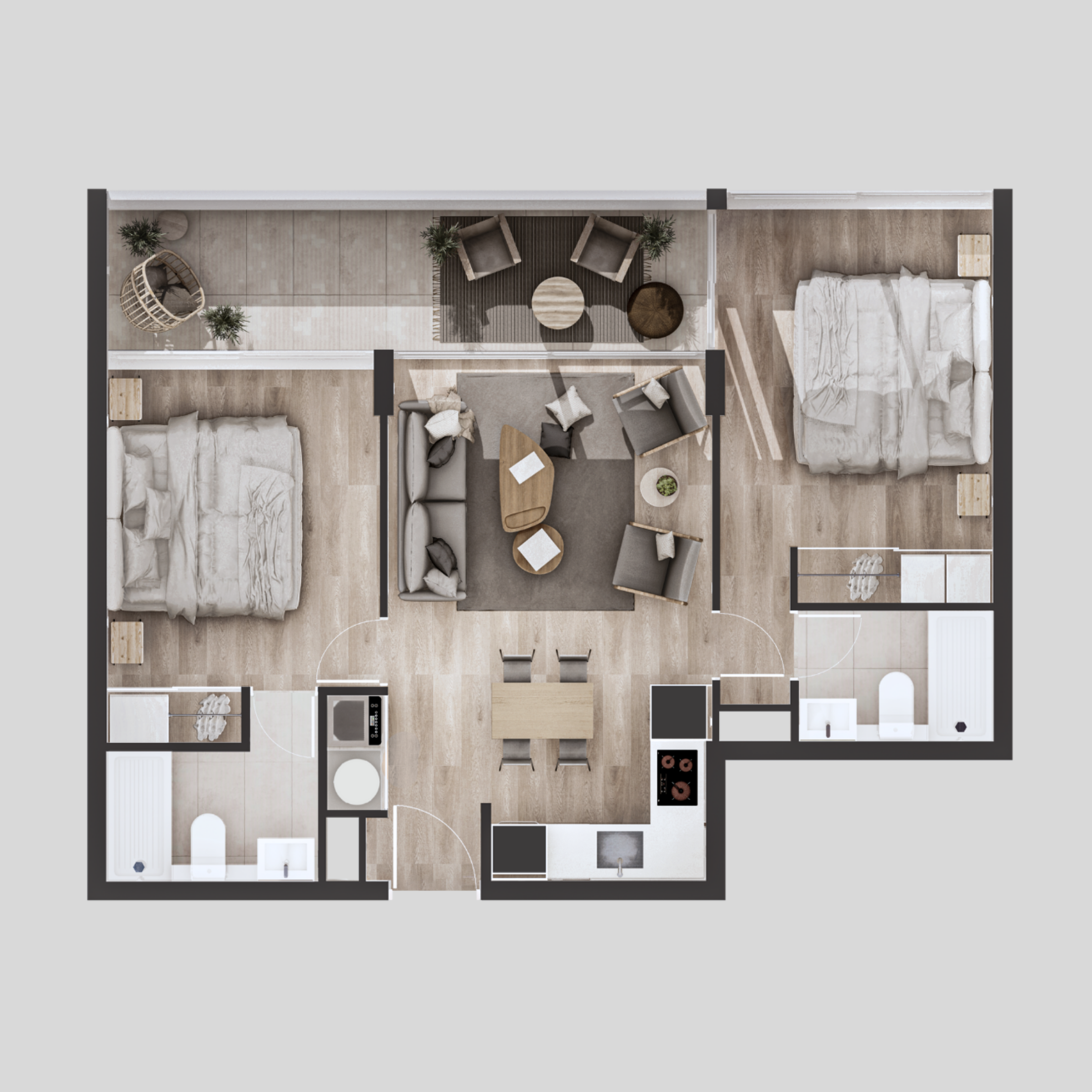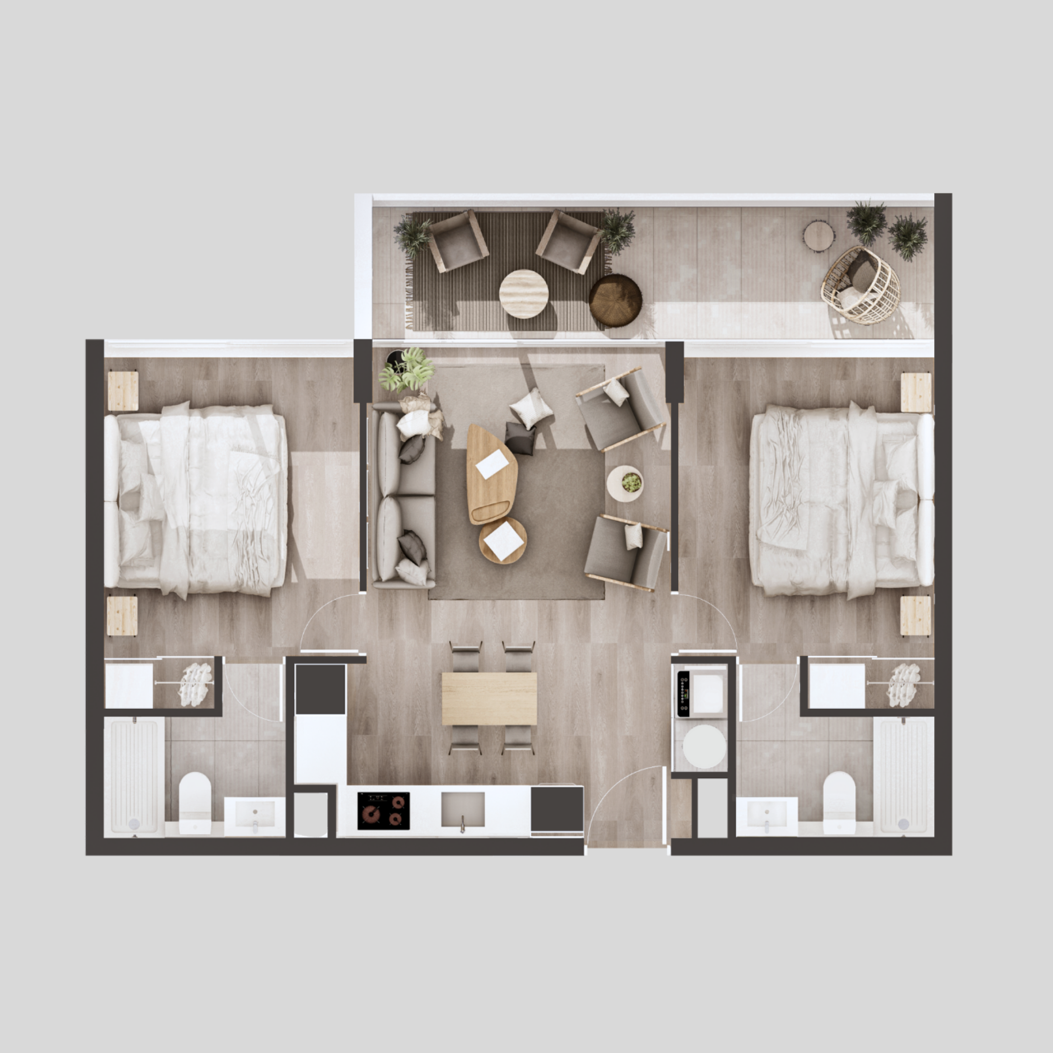 • Amplias terrazas desde 8,18m² hasta 12,81m²