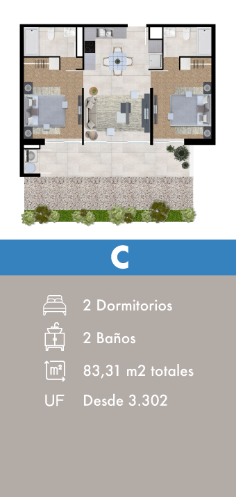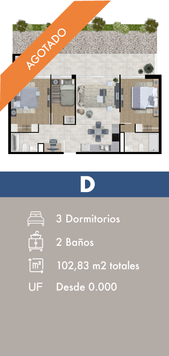 Las imágenes han sido elaboradas con fines ilustrativos y todas las dimensiones son aproximadas no constituyendo necesariamente una imagen exacta de la realidad. Lo anterior se informa conforme a la Ley Nº 19472. Precios indicados sujetos a disponibilidad, verificarlos en sala de informaciones según stock de unidades y condiciones de compra.